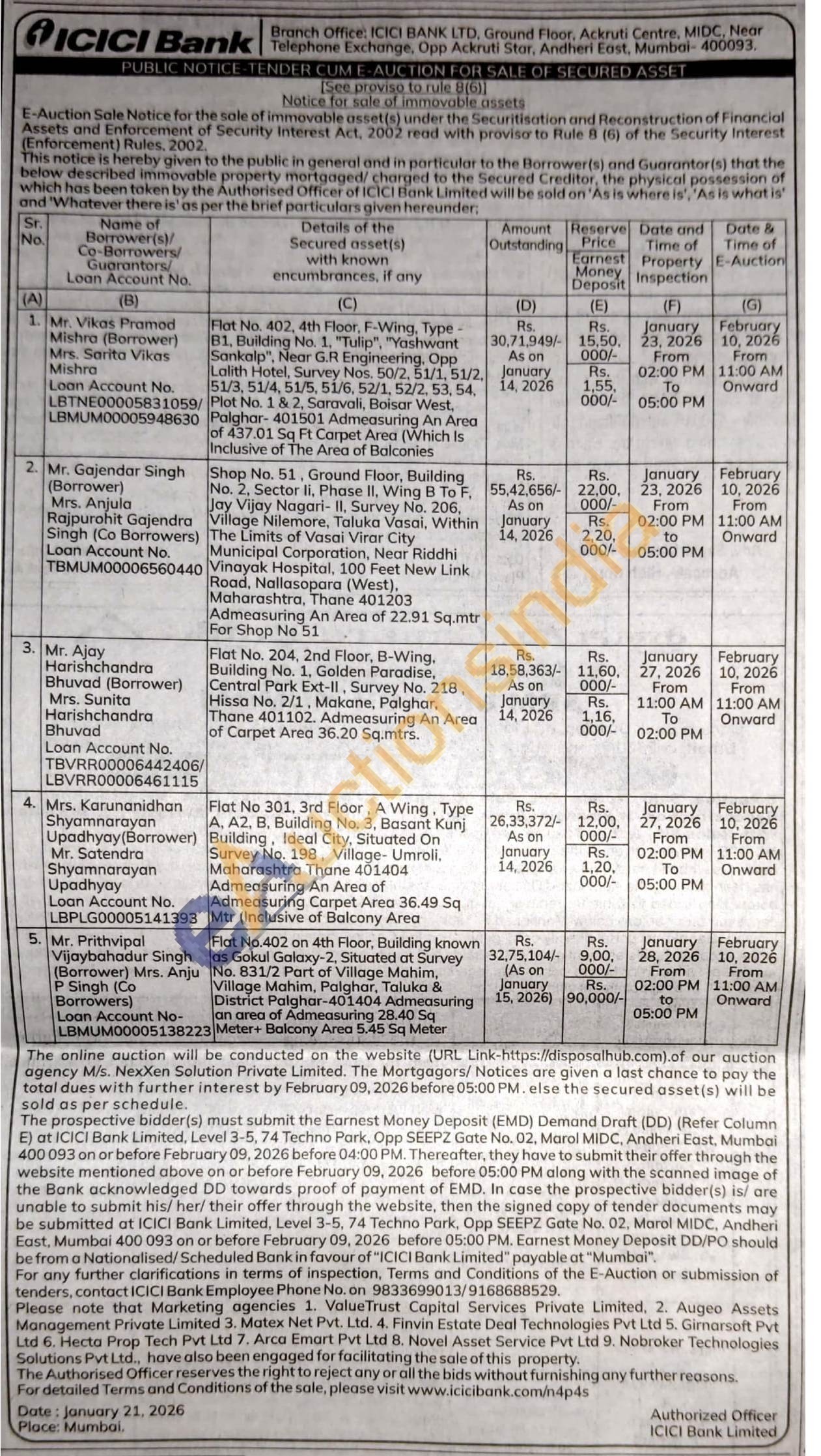 Flat No. 204, 2nd Floor, B-Wing. Building No. 1. Golden Paradise, Central Park Ext-II, Survey No. 218. Hissa No. 2/1, Makane, Palghar, Thane 401102. Admeasuring An Area of Carpet Area 36.20 Sq.mtrs.