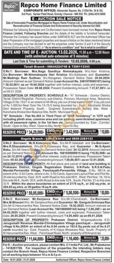 DESCRIPTION OF PROPERTY: All that piece and parcel of land and building in Prakasam District, Ongole Registration District, S.N.Padu S.R.S.N.Padu Mandal-Pernamitta Village, Panchayath-Pernamitta Village, S.No. 99/1A an extent of Ac: 9.83 Cents, where in Ac. 0-50 Cents, Approved Layout Plan and Plot No. 20 site bounded by: East 30 ft. width Road-to this side 66 ft., West: Plot Nos. 18, 19-to this side 66ft, North: 30 ft. width Road-to this side 33 ft. South: Plot No. 21-to this side 33 ft. Within the above boundaries an extent of 2178 sq.ft., or 242 sq.yrds. or 204.65 sq.mtrs. or 30 gadies 18 sq.ft. site