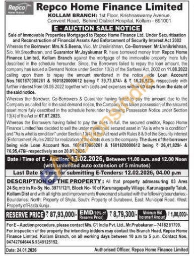24 Sq.mtr in Re-Sy. No. 3971/12/1, Block No-10 of Karunagapally Village, Karunagapally Taluk, Kollam Dist and with all rights and improvements thereonand situated with the following boundaries: Boundaries: North Property of Shyla, South Property of Surabeevi, East: Municipal Roed. West Property of Razia Kunju