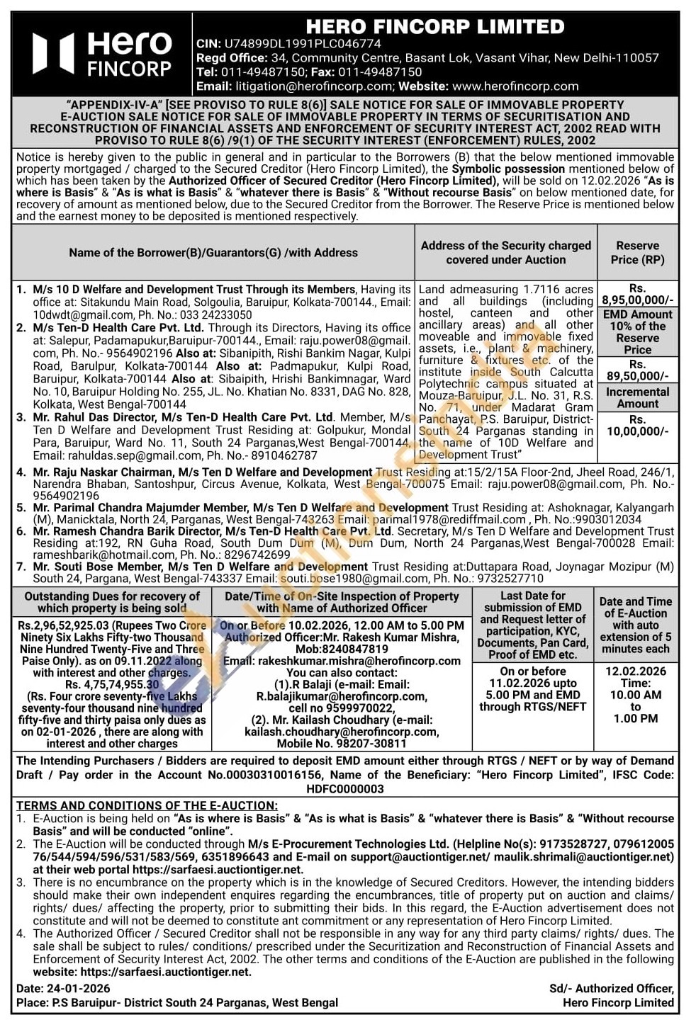 Land admeasuring 1.7116 acres and all buildings (including hostel, canteen and other ancillary areas) and all other moveable and immovable fixed assets, i.e., plant & machinery, furniture & fixtures etc. of the Polytechnic campus situated at institute inside South Calcutta Mouza-Baruipur, J.L. No. 31, R.S. No. 71, under Madarat Gram Panchayat, P.S. Baruipur, District-South 24 Parganas standing in the name of 100 Welfare and Development Trust"