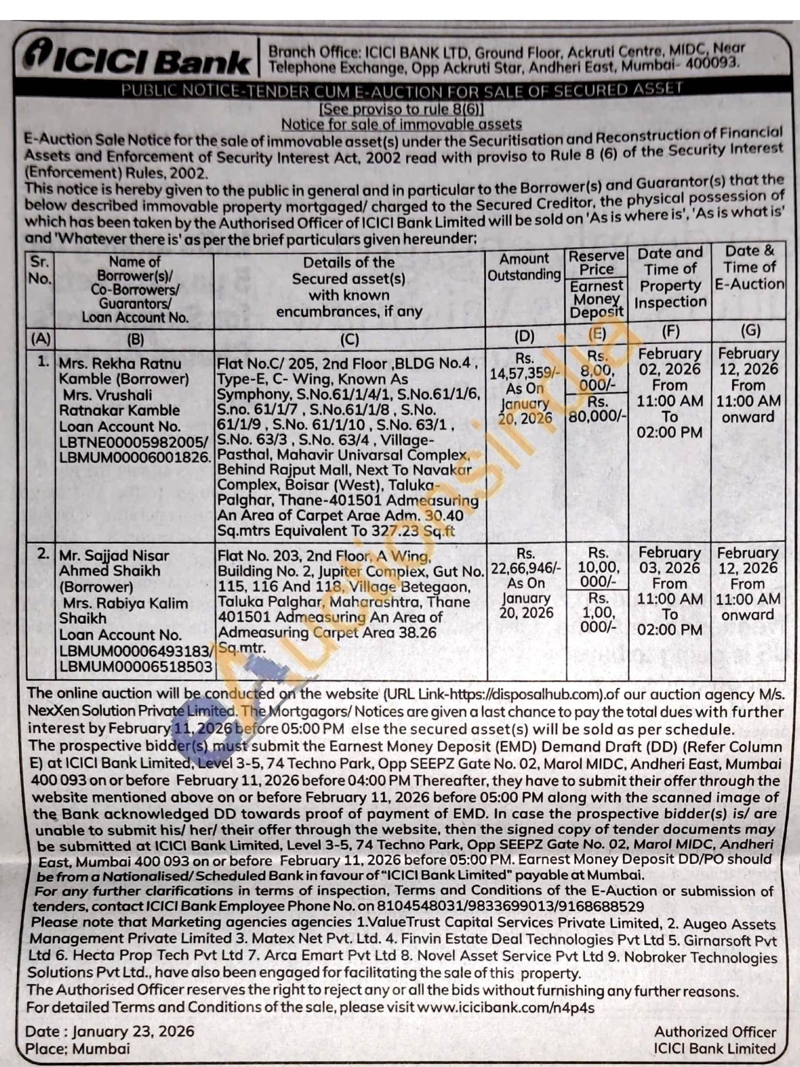 Flat No. 203, 2nd Floor, A Wing, Building No. 2, Jupiter Complex, Gut No. 115, 116 And 118, Village Betegaon, Taluka Palghar, Maharashtra, Thane 401501 Admeasuring An Area of Admeasuring Carpet Area 38.26 /Sq.mtr.