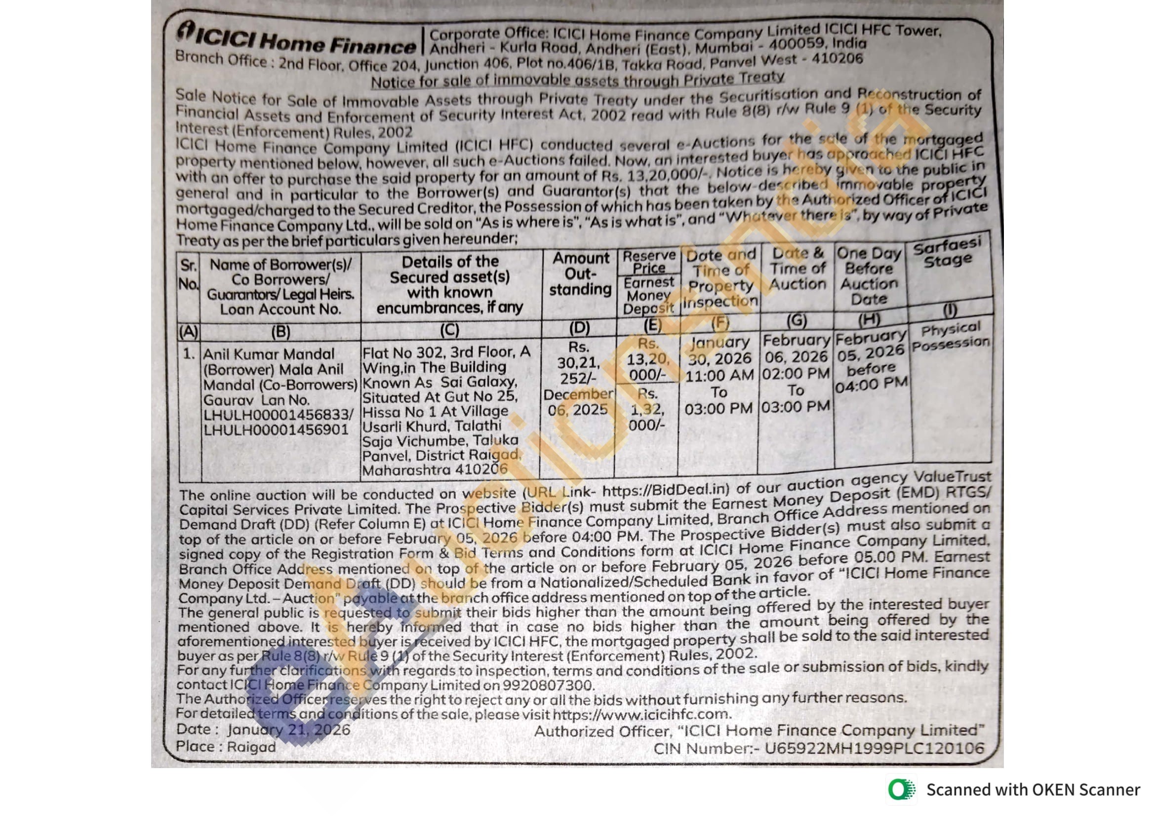 Flat No 302, 3rd Floor, A Wing.in The Building Known As Sai Galaxy, Situated At Gut No 25, Hissa No 1 At Village Usarli Khurd, Talathi Saja Vichumbe, Taluka Panvel, District Raigad, Maharashtra 410206