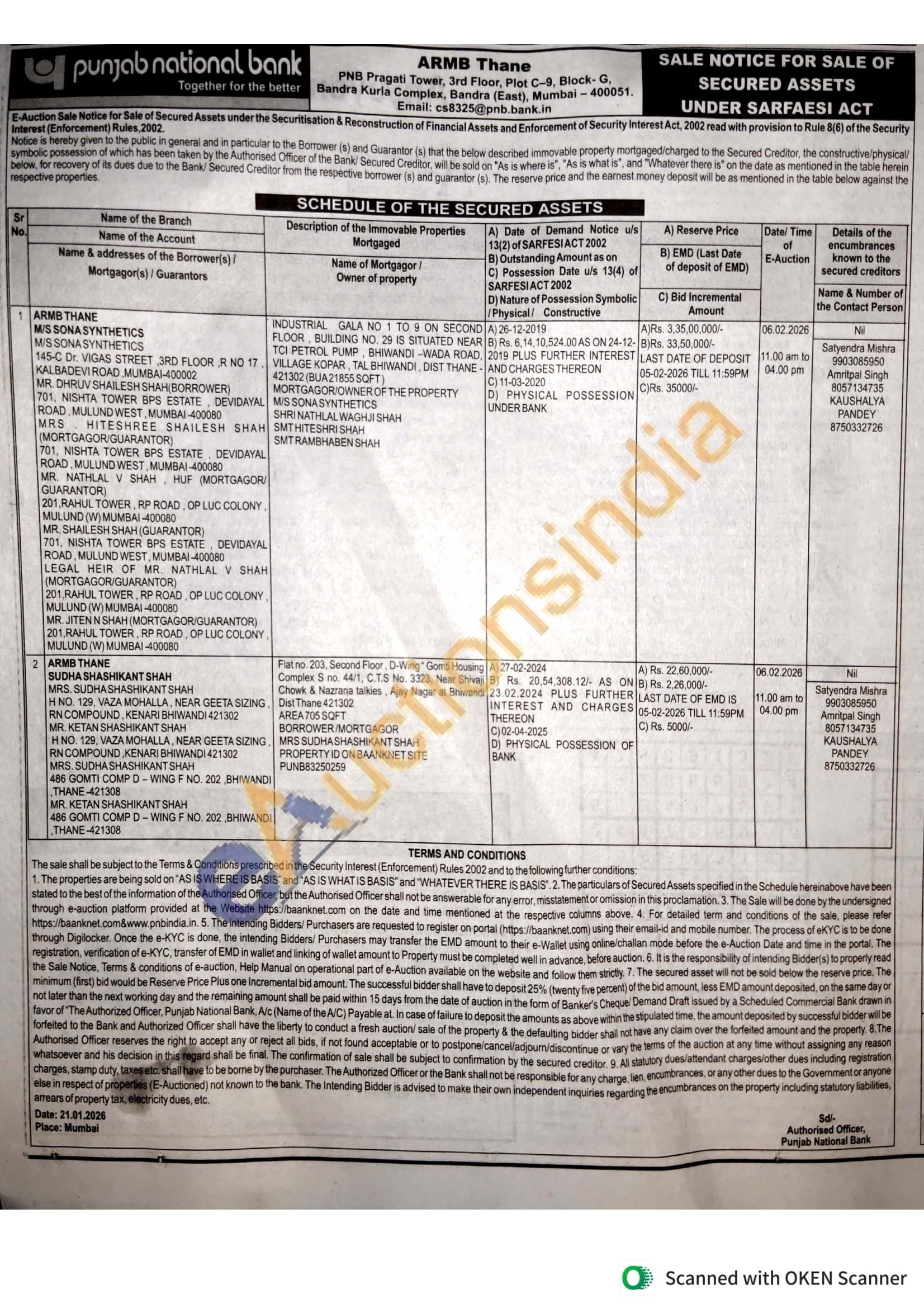 INDUSTRIAL GALA NO 1 TO 9 ON SECOND FLOOR, BUILDING NO. 29 IS SITUATED NEAR TCI PETROL PUMP, BHIWANDI-WADA ROAD, VILLAGE KOPAR, TAL BHIWANDI, DIST THANE 421302 (BUA21855 SQFT) MORTGAGOR OWNER OF THE PROPERTY MIS SONA SYNTHETICS SHRINATHLAL WAGHJI SHAH SMTHITESHRI SHAH SMT RAMBHABEN SHAH