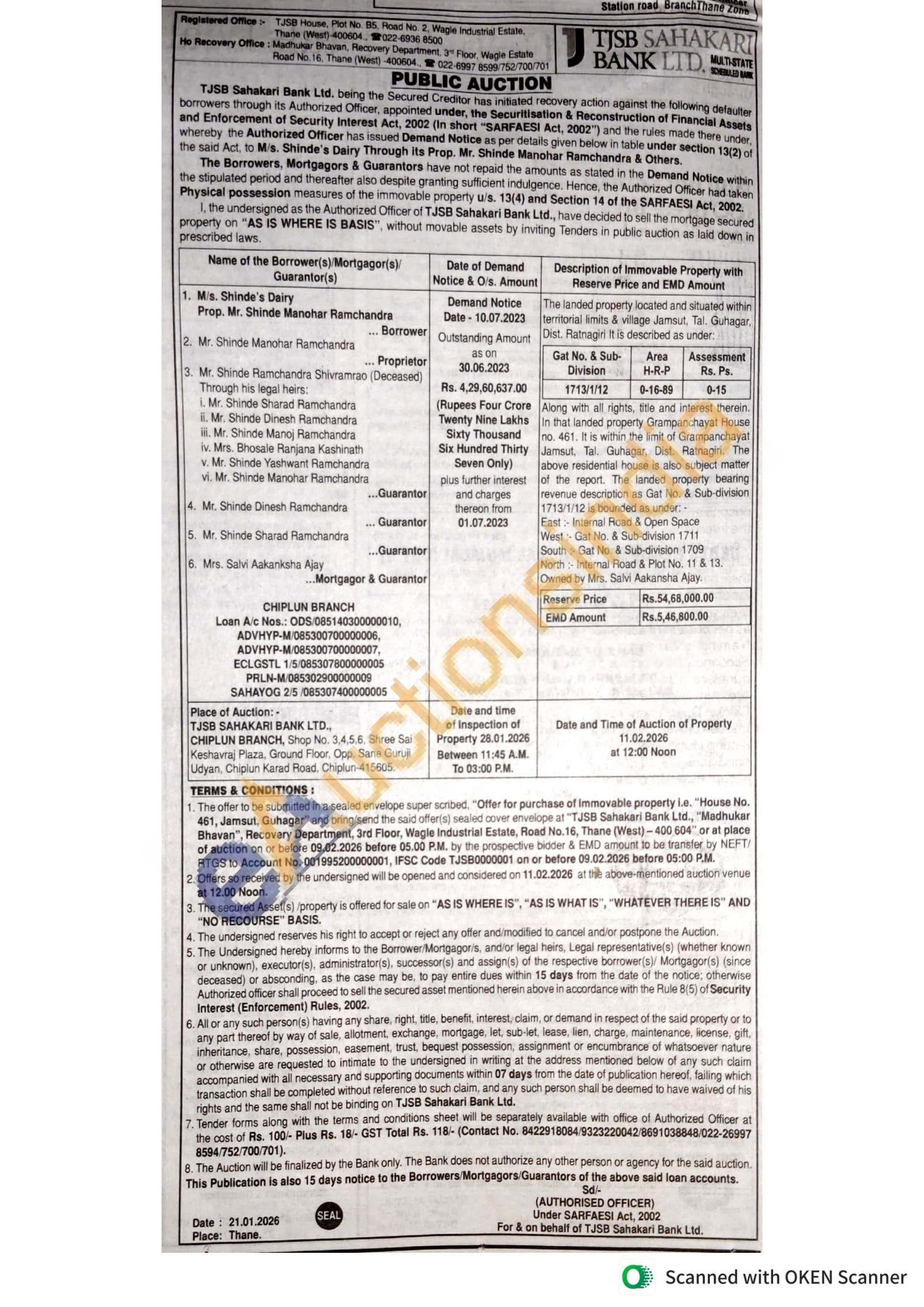 The landed property located and situated within territorial limits & village Jamsut, Tal. Guhagar. Ratnagiri it is described as under Along with all rights, title and interest therein. In that landed property Grampanchayat House no. 461. It is within the limit of Grampanchayat Jamsut. Tal. Guhagar, Dist. Ratnagiri. The above residential house is also subject matter of the report. The landed property bearing revenue description as Gat No. & Sub-division 1713/1/12 is bounded as under-East Internal Road & Open Space West Gat No. & Sub-division 1711 South Gat No. & Sub-division 1709 North Internal Road & Plot No. 11 & 13. Owned by Mrs. Salvi Aakansha Ajay