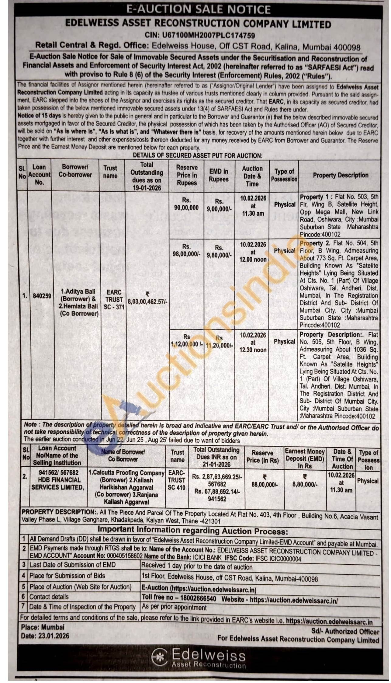 PROPERTY DESCRIPTION: All The Piece And Parcel Of The Property Located At Flat No. 403, 4th Floor, Building No.6. Acacia Vasant Valley Phase L, Village Ganghare, Khadakpada, Kalyan West, Thane -421301