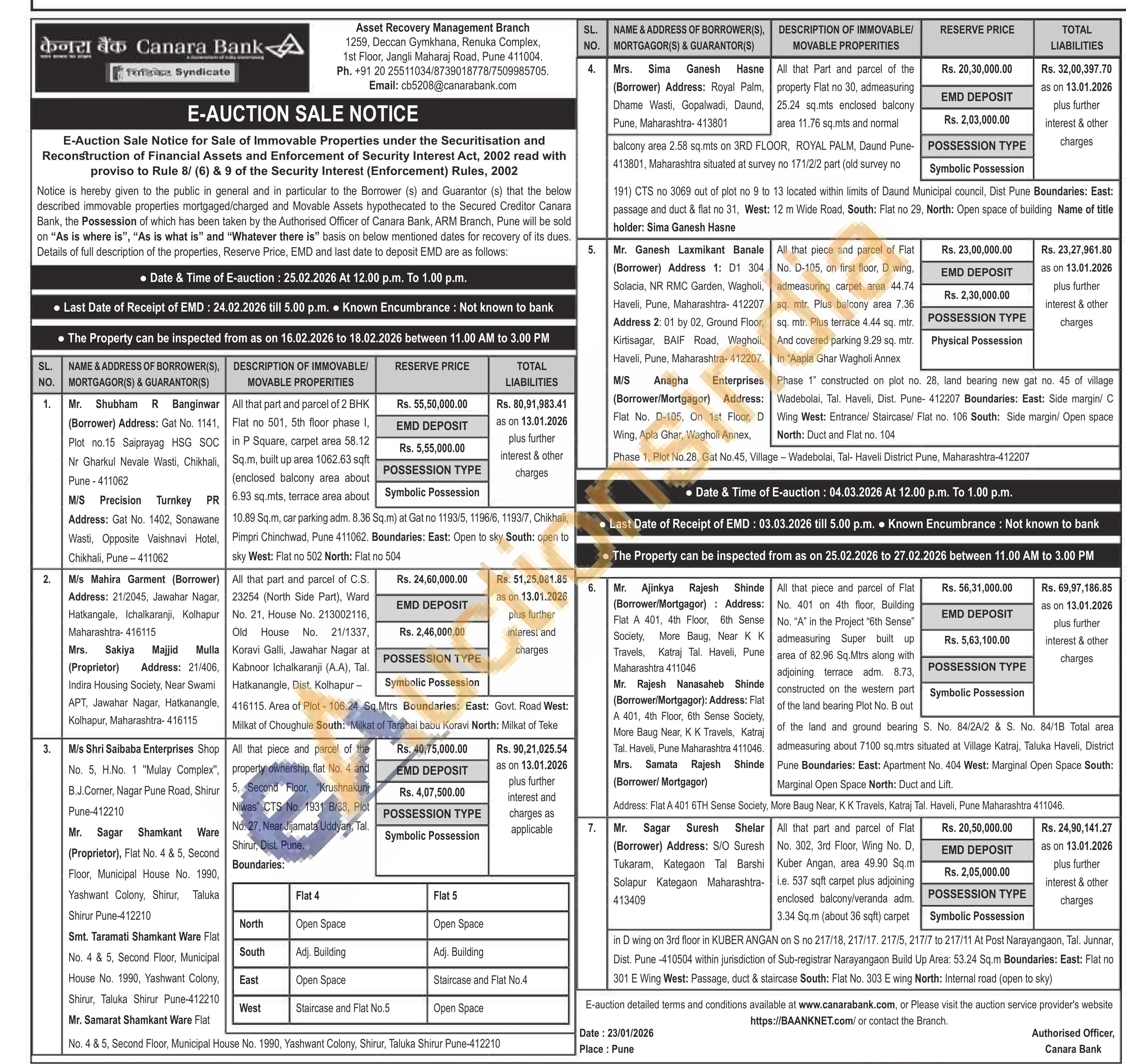 Contact No : Ph. +91 20 25511034/8739018778/7509985705. Email: cb5208@canarabank.com