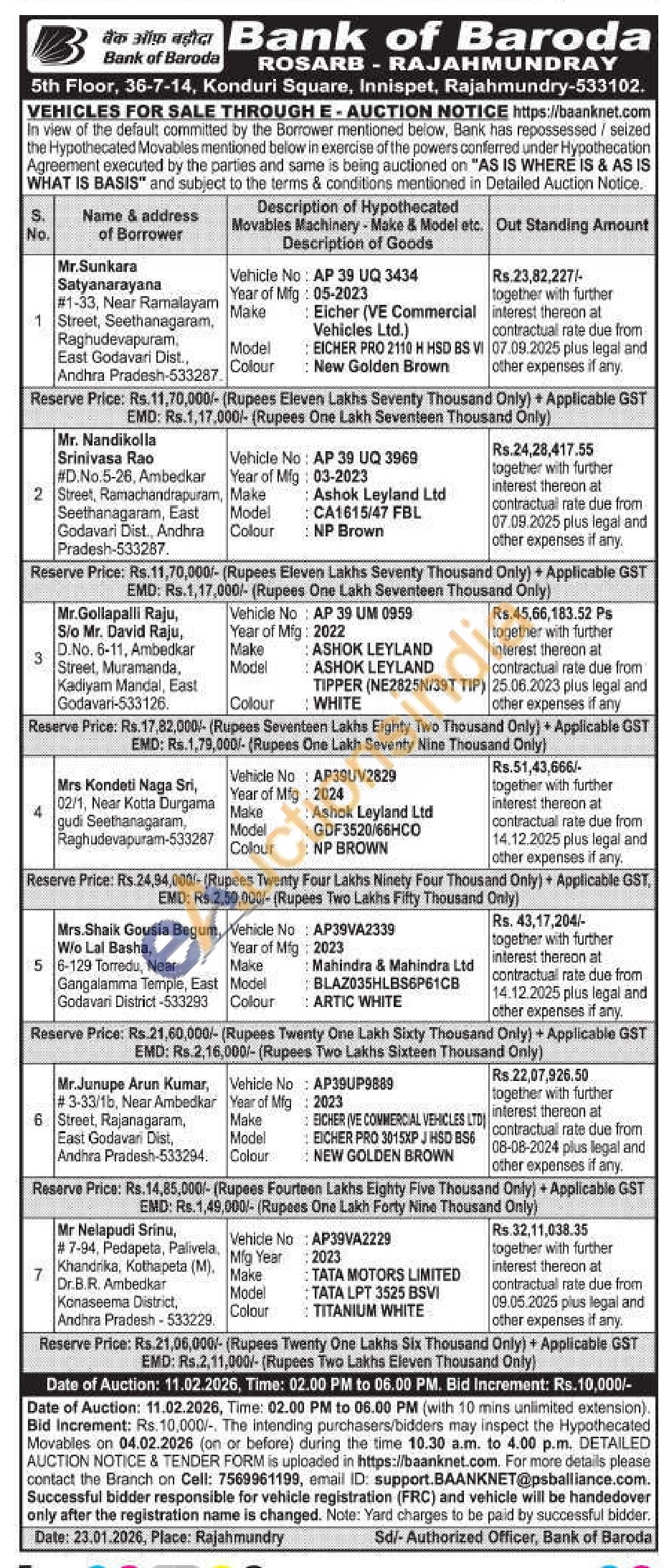 Vehicle No: AP39VA2339Year of Mfg: 2023 Make Mahindra & Mahindra Ltd : BLAZ035HLBS6P61CB Model Colour : ARTIC WHITE