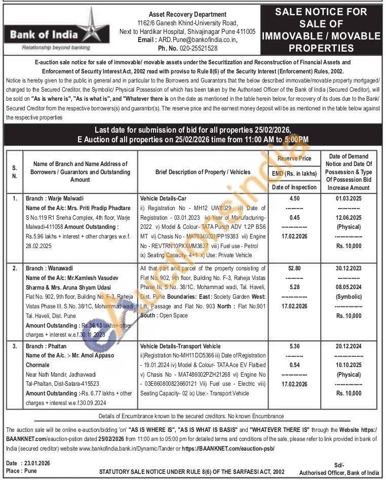 All that part and parcel of the property consisting of Flat No. 902, 9th floor, Building No. F-3, Raheja Vistas Phase III, S.No. 38/1C, Mohammad wadi, Tal. Haveli, Dist. Pune Boundaries: East: Society Garden West: Lift, Passage and Flat No. 903 North Flat No.901 South: Open Space