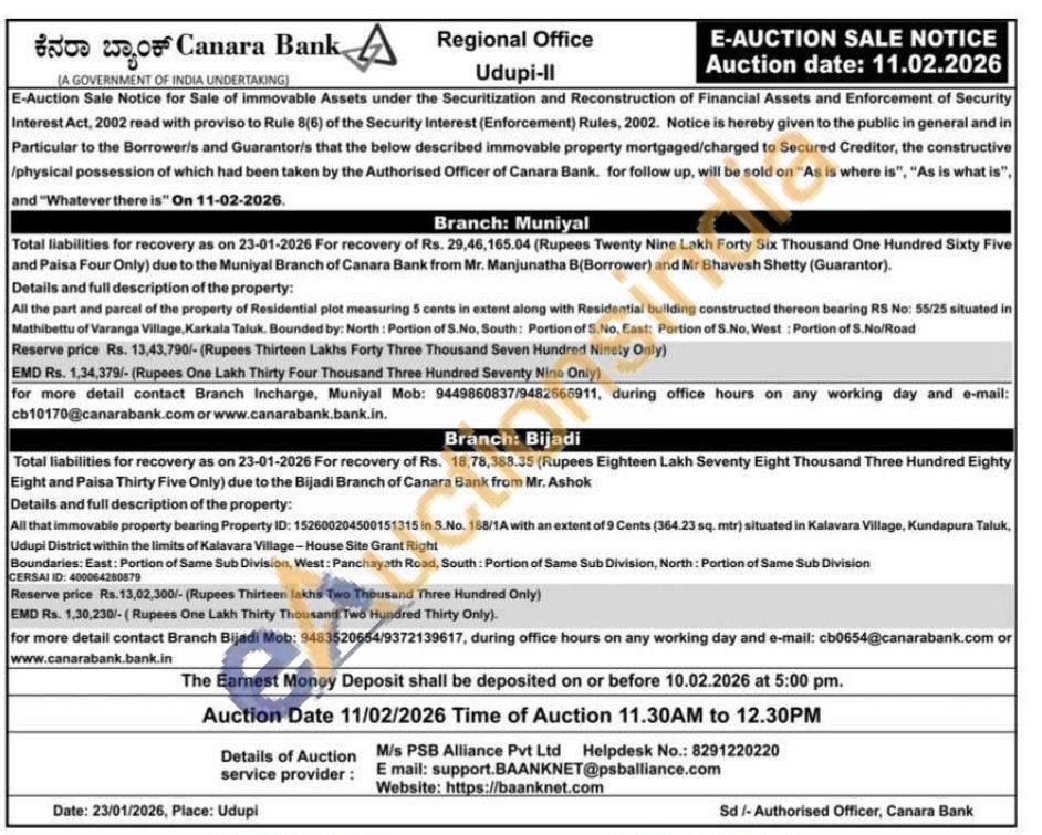 All that immovable property bearing Property ID: 152600204500151315 in S.No. 188/1A with an extent of 9 Cents (364.23 sq. mtr) situated in Kalavara Village, Kundapura Taluk, Udupi District within the limits of Kalavara Village-House Site Grant Right Boundaries: East: Portion of Same Sub Division, West: Panchayath Road, South: Portion of Same Sub Division, North: Portion of Same Sub Division CERSAI ID: 400064280879