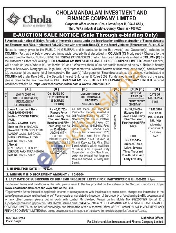 All that Piece and Parcel of Residential Property situated at Old Revision Survey No. 217/1D, New Survey No. 156/1/D, Plot No. 20, Admeasuring Plot Area 157. 50 Sq. Mtrs.i.e. 1694.86 Sq. Feet upon which Ground Floor Construction admeasuring 1073 Sq. Feet and First Floor Construction 1073 Situated al Miraj & Kupwad, Tal. Miraj, Dist Sangli, which is Within local limits of Miraj and Kupwad City Corporation in City Sangil and within the limits of Sub-Registrar Miraj and Kupwad, Tal. Miraj, Dist. Sangli