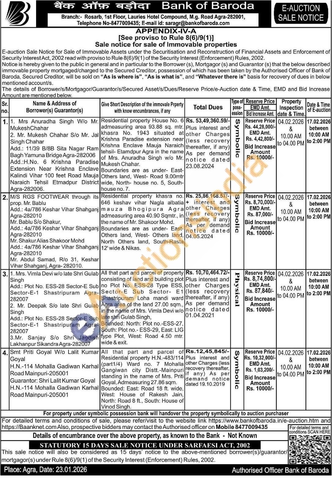 All that part and parcel of Residential property H.N.-483/114 (part1/4) Ward no. 7 Mohalla Gangiwan city Distt.-Mainpuri standing in the name of Mrs. Priti Goyal, Admeasuring 27.86 sqm. Bounded: East: Road 18 ft. wide, West: House of Rakesh Jain, North: Road 8 ft.. South: House of Vinod Singh.