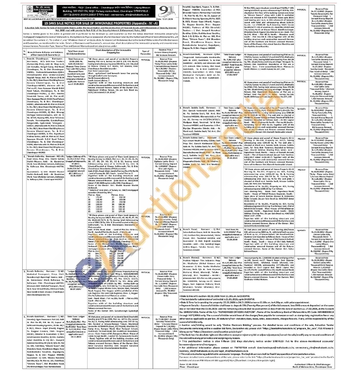 All these pieces and parcel of Open Land/property Bearing Survey no.386/2, Plet no.1, 21, 22, 23, 24, 25, 26, 27, 28, 29, 30, 31, 32 & 33, having total Admeasuring area of is 2174.42 Sq. mtr. & Situated/located at Mouza: Sakharwahi, Tal, & Disti Chandrapur: Boundaries of Plots as under: East:9 Mits, Road. Wost: Land of Survey No.373: North Land of Survey No. 367:South Land of Motno.2. Together with all the building structure and construction annexed thereas and all the furniture and fiatures annexed therean. (Sale deed an. 2062/2008 dated 17.03.2008 registered by SRO, Chandrapur). Name of the Owner: Shri. Sheikh Muzier Sheikh Findewali.