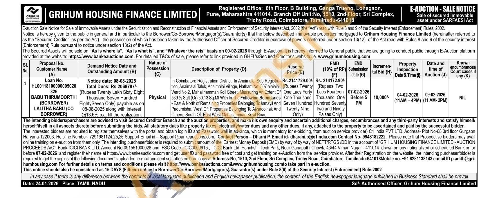 In Coimbatore Registration District, In Anaimalai Sub Registra- tion, Anaisalai Taluk, Anaimalai Village, Natham No. 807 aiaiaial Ward No.2, Mahalinamman Koil Street, Measuring An Extent Of 539% Sqft (Or) 50.13 Sq.Mt