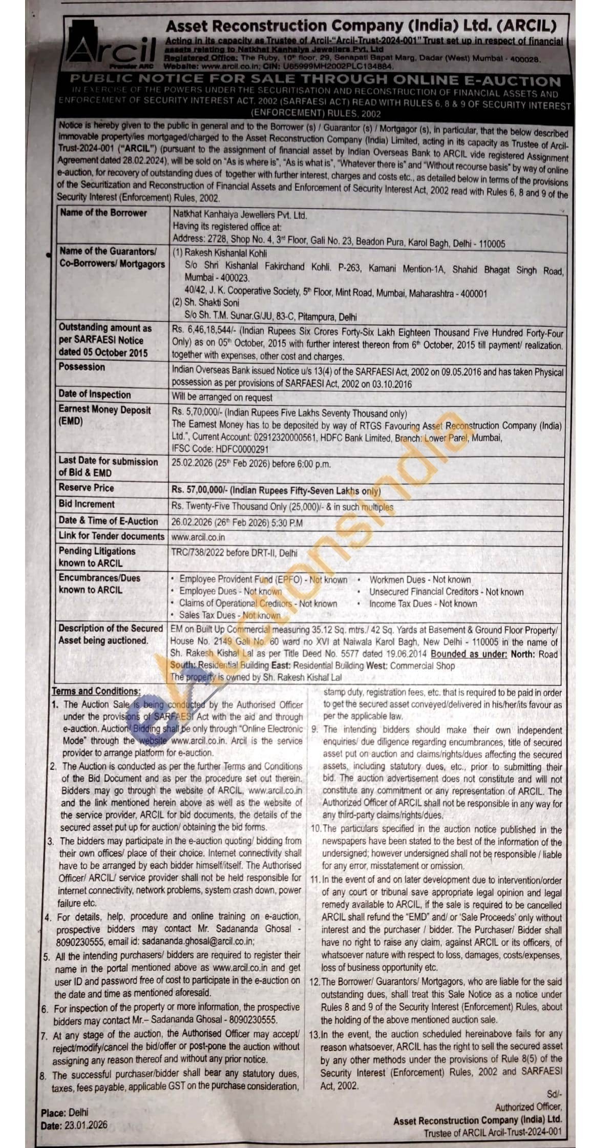 EM on Built Up Commercial messuing 35.12 Sq mrs/ 42 Sq Yards at Bastent & Ground Floor Property/House No. 2149 Gali No. 60 ward no XVI at Naliwata Kanal Bagh New Delhi 110005 in the name of Sh. Rakesh Kishal Lal as per Title Deed no 5577 dated 19.06.2014 Bounded as under: North: Road South: Residential Building East: Residential Building West: Commercial Shop
