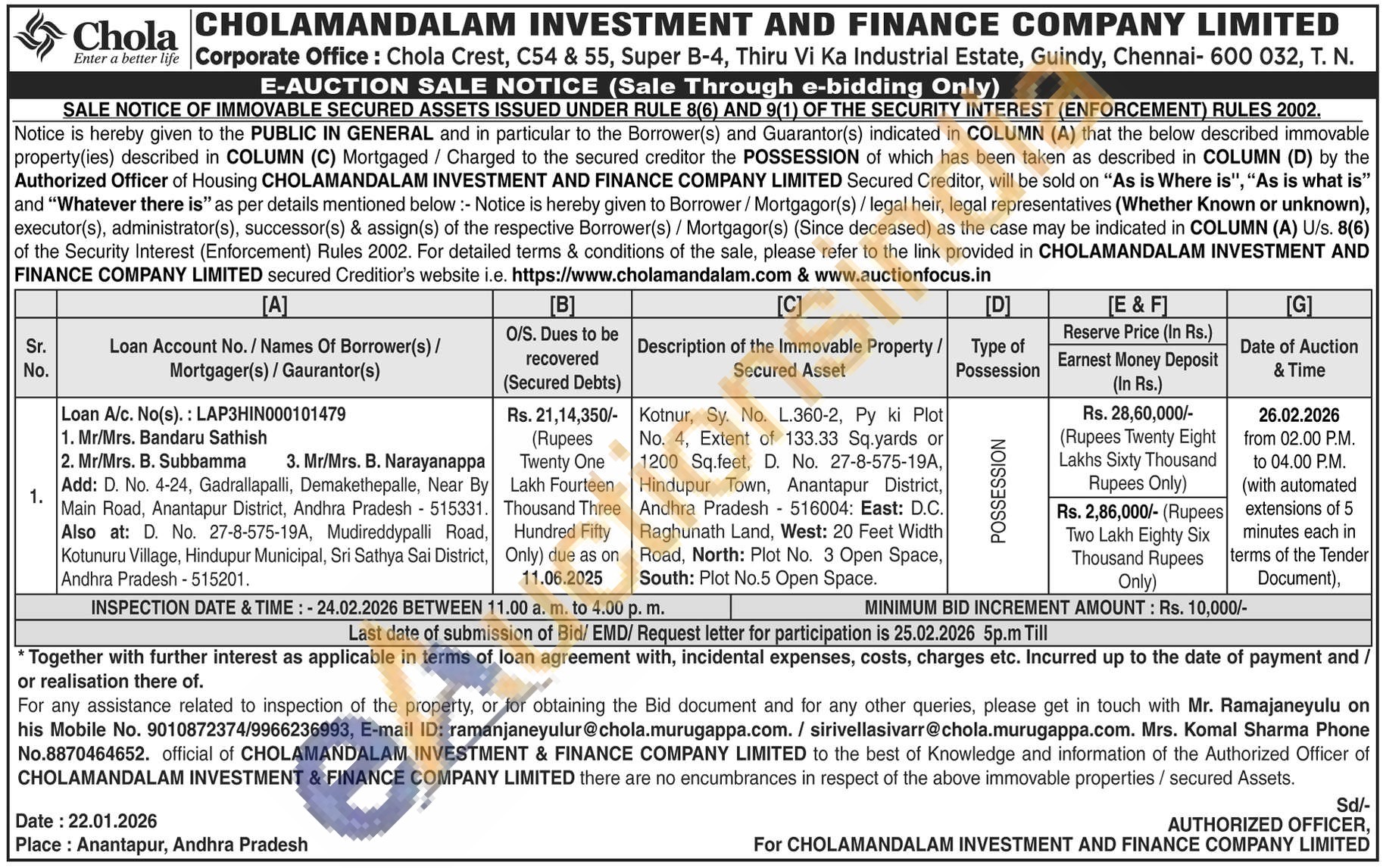 Kotnur, Sy. No. L.360-2, Py ki Plot No. 4, Extent of 133.33 Sq.yards or 1200 Sq.feet, D. No. 27-8-575-19A, Hindupur Town, Anantapur District, Andhra Pradesh 516004: East: D.C. Raghunath Land, West: 20 Feet Width Road, North: Plot No. 3 Open Space, South: Plot No.5 Open Space