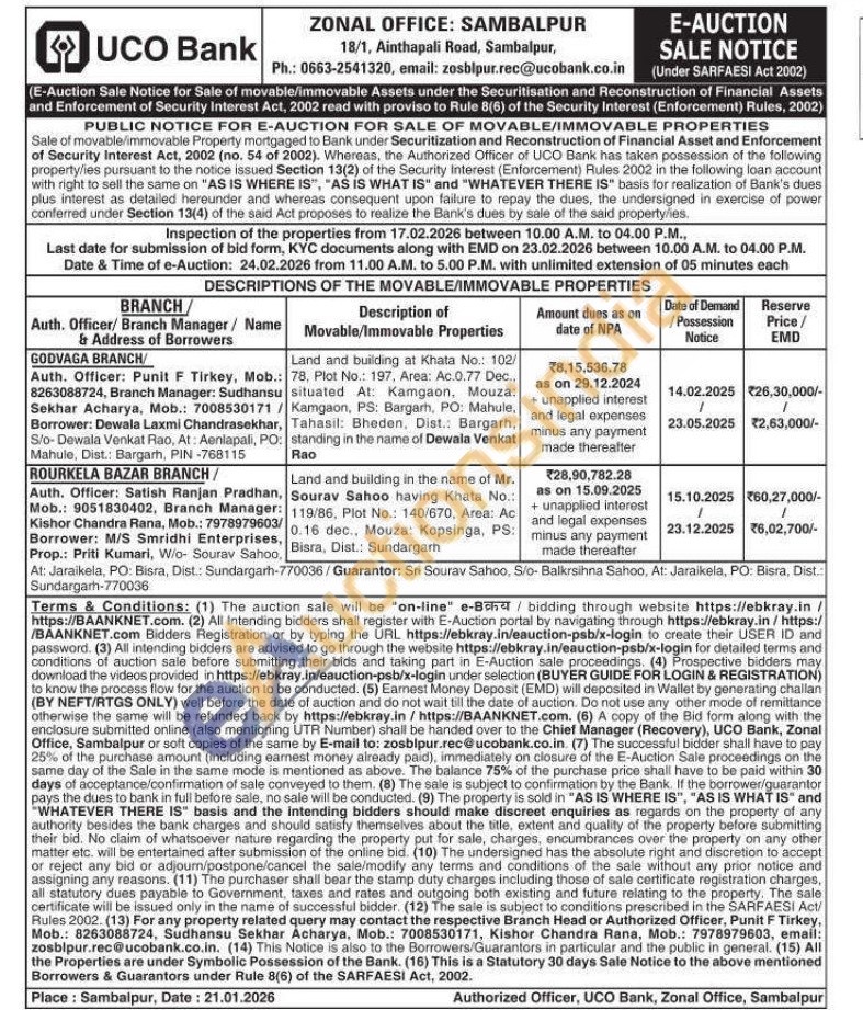 1) Land and building at Khata No.: 102/78, Plot No.: 197, Area: Ac.0.77 Dec., situated At: Kamgaon, Mouza: Kamgaon, PS: Bargarh, PO: Mahule, Tahasil: Bheden, Dist.: Bargarh, standing in the name of Dewala Venkat Rao