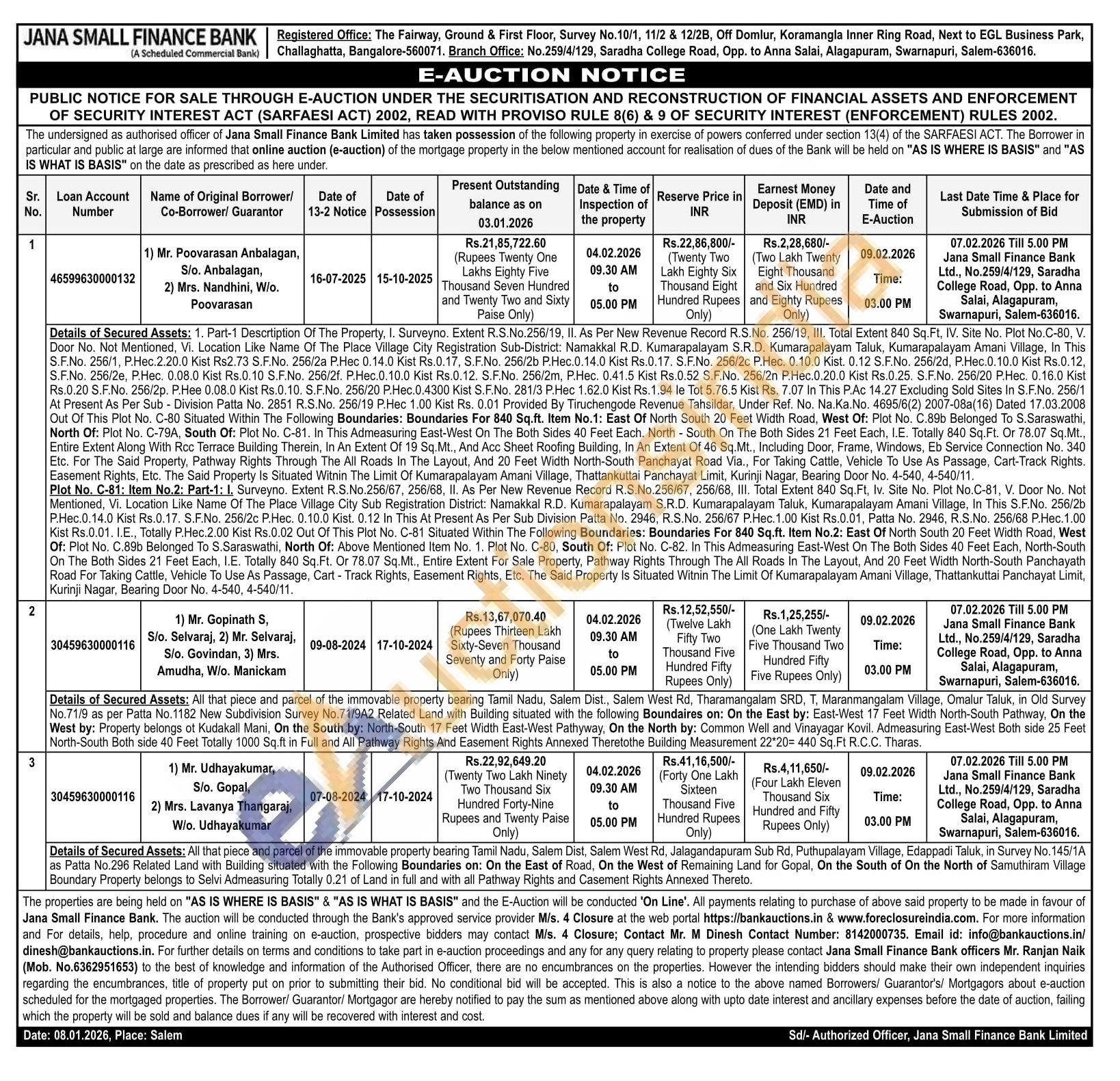 3) All that piece and parcel of the immovable property bearing Tamil Nadu, Salem Dist, Salem West Rd, Jalagandapuram Sub Rd, Puthupalayam Village, Edappadi Taluk, in Survey No. 145/1A as Patta No.296 Related Land with Building situated with the Following Boundaries on: On the East of Road, On the West of Remaining Land for Gopal, On the South of On the North of Samuthiram Village Boundary Property belongs to Selvi Admeasuring Totally 0.21 of Land in full and with all Pathway Rights and Casement Rights Annexed Thereto