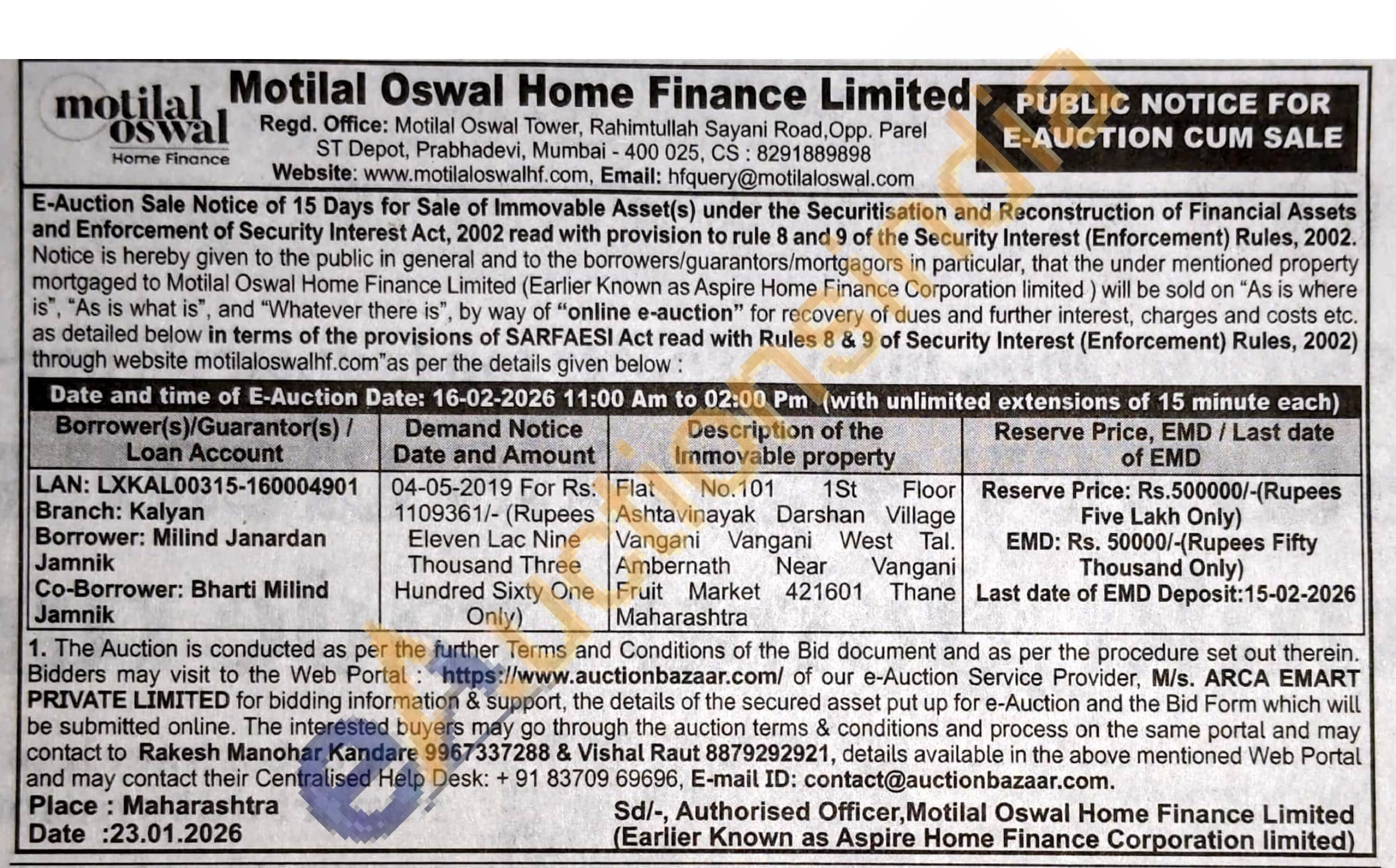 Flat No.101 1St Floor Ashtavinayak Darshan Village Vangani Vangani West Tal. Ambernath Near Vangani Fruit Market 421601 Thane Maharashtra