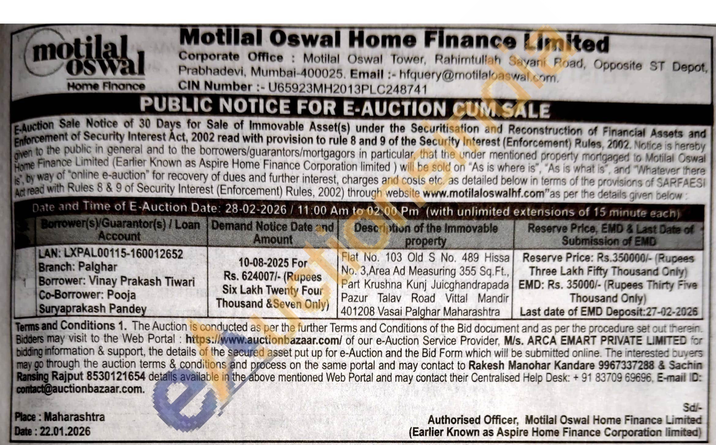 Flat No. 103 Old S No. 489 Hissa No. 3, Area Ad Measuring 355 Sq.Ft., Part Krushna Kunj Juicghandrapada Pazur Talav Road Vittal Mandir 401208 Vasai Palghar Maharashtra