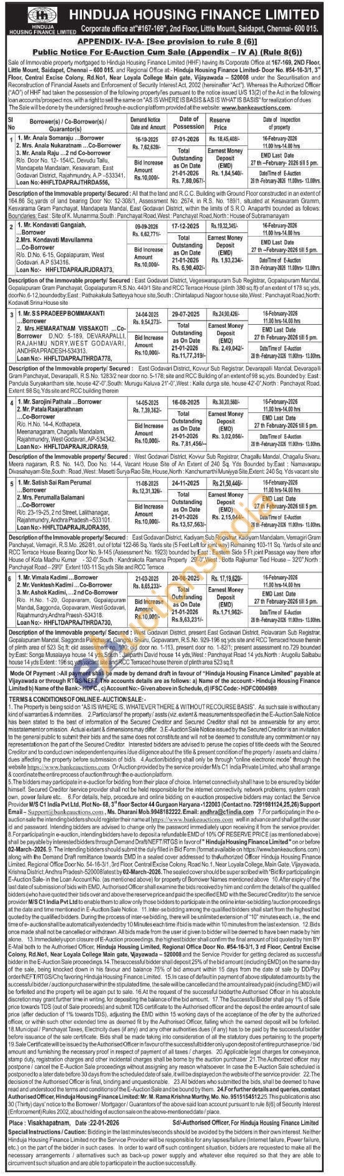 Description of the Immovable property/Secured: East Godavari District, Kovvur Sub Registrar, Devarapalli Mandal, Devarapalli Gram Panchayat, Devarapalli, R.S.No. 1283/2 near door no. 5-178; site and RCC Building of an extent of 98 sq.yds. Bounded by: East: Pandula Suryakantham site, house 42-0, South: Murugu Kaluva 21-0, West: Kalla durga site, house 42-0', North: Panchayat Road, Extent: 98 Sq. Yds site and RCC building therein