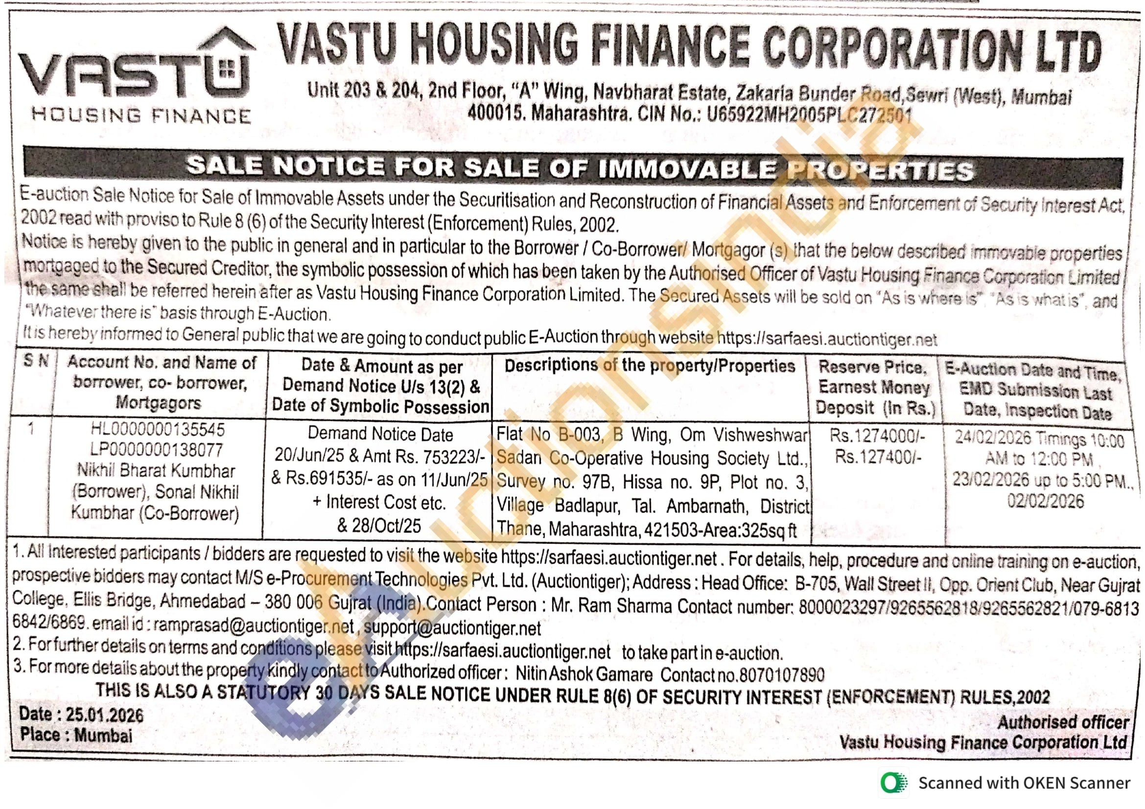 Authorized officer: Nitin Ashok Gamare Contact no.8070107890