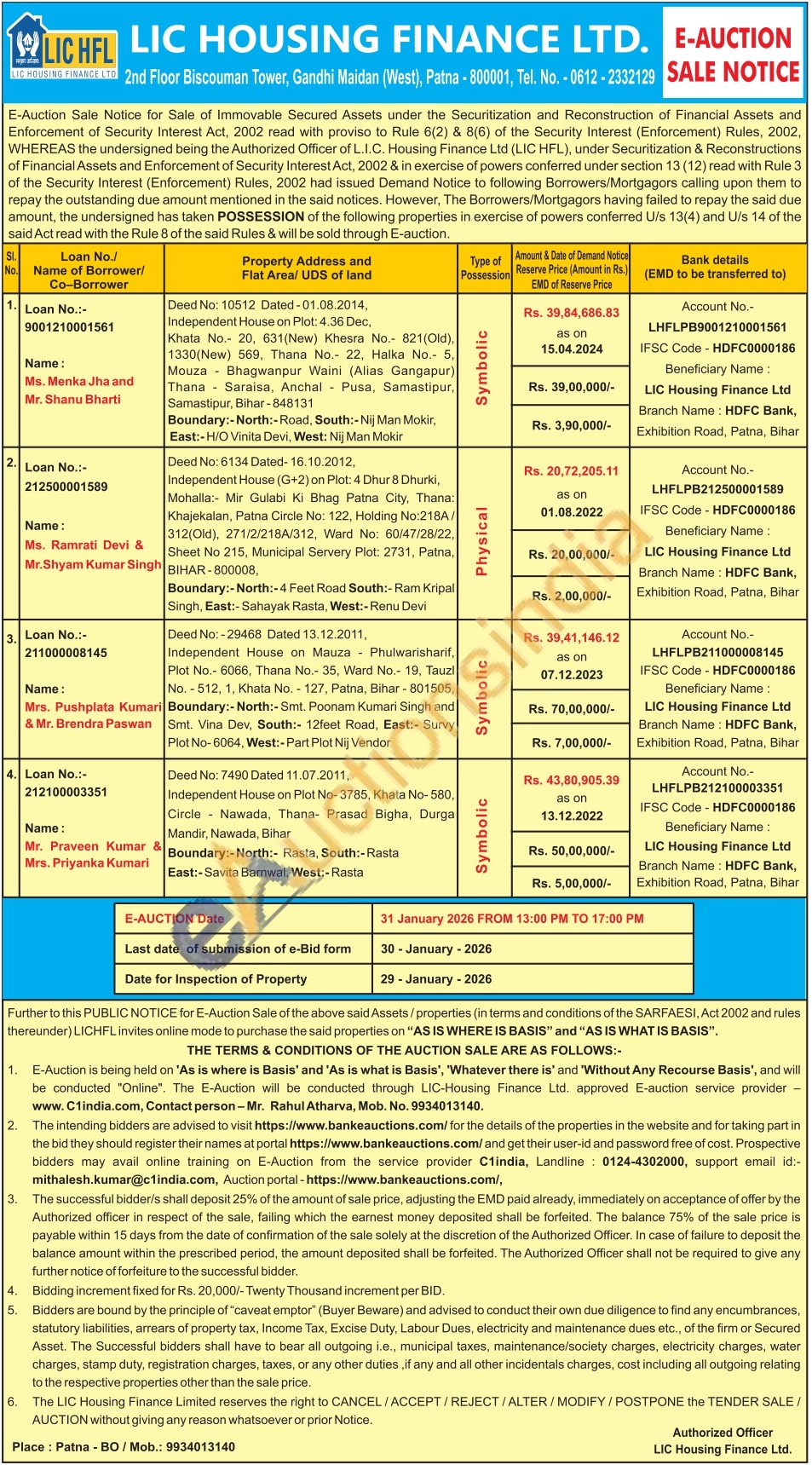 Deed No: 6134 Dated-16.10.2012, Independent House (G+2) on Plot: 4 Dhur 8 Dhurki, Mohalla: Mir Gulabi Ki Bhag Patna City, Thana Khajekalan, Patna Circle No: 122, Holding No.218A/312(Old), 271/2/218A/312, Ward No: 60/47/28/22 Sheet No 215, Municipal Servery Plot: 2731. Patna. BIHAR-800008.