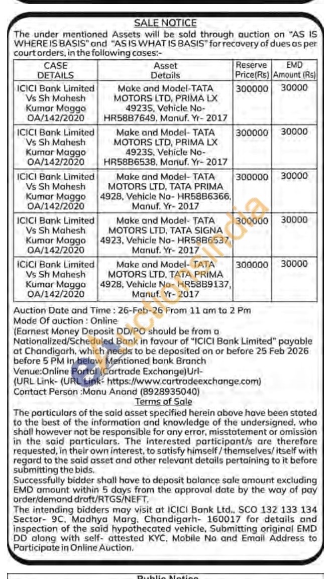 Make and Model- TATA MOTORS LTD, PRIMA LX 49235, Vehicle No-HR5886538, Manuf. Yr-2017