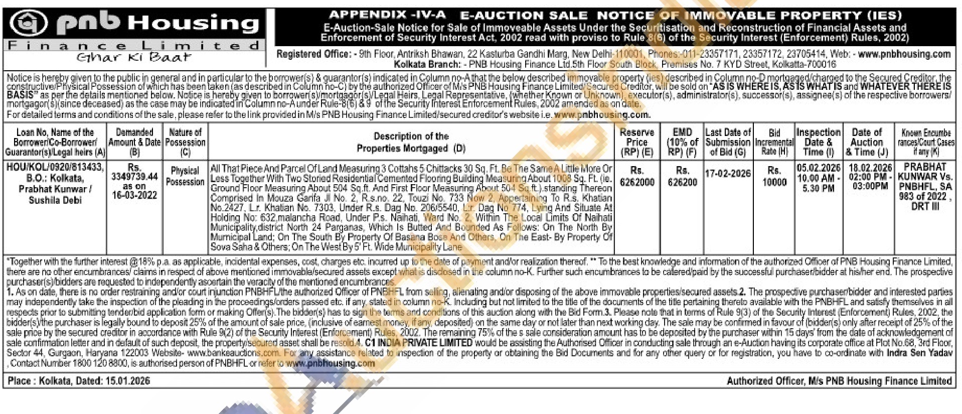 All That Piece And Parcel Of Land Measuring 3 Cottahs 5-Chittacks 30 Sq. Ft. Be The Same A Little More Or Less Together With Two Storied Residential Cemented Flooring Building Measuring About 1008 Sq. FL. (le. Ground Floor Measuring About 504 Sq.ft. And First Floor Measuring About 504 Sq.ft.) standing Thereon Comprised In Mouza Garifa Ji No. 2, Rs.no. 22, Touzi No. 733 Now 2, Appertaining To Rs. Khatian No.2427, Lr. Khatian No. 7303, Under R.s. Dag No. 206/5540, Lir. Dag No 774, Lying And Situate At Holding No: 632, malancha Road, Under Ps. Naihati, Ward No. 2. Within The Local Limits Of Naihati Municipality, district North 24 Parganas, Which Is Butted And Bounded As Follows: On The North By Municipal Land: On The South By Property Of Basana Bose And Others, On The East- By Property Of Sova Saha & Others; On The West By 5' Ft. Wide Municipality Lane