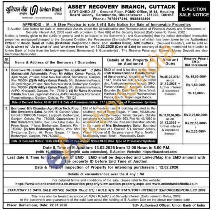 EMD of land & building in the name of Mr Rama Krushna Panda(Owner of the property), situated at Plot No: 1847, Khata No: 606, Area: Ac 0.050 dec, Aladigaon revenue mouza, SRO: Purushottampur, Ganjam, Odisha. Bounded By: East-Tarini Sahu, West: Harihara Panda, North: Radhamohan Panda, South: Rajamarga Danda