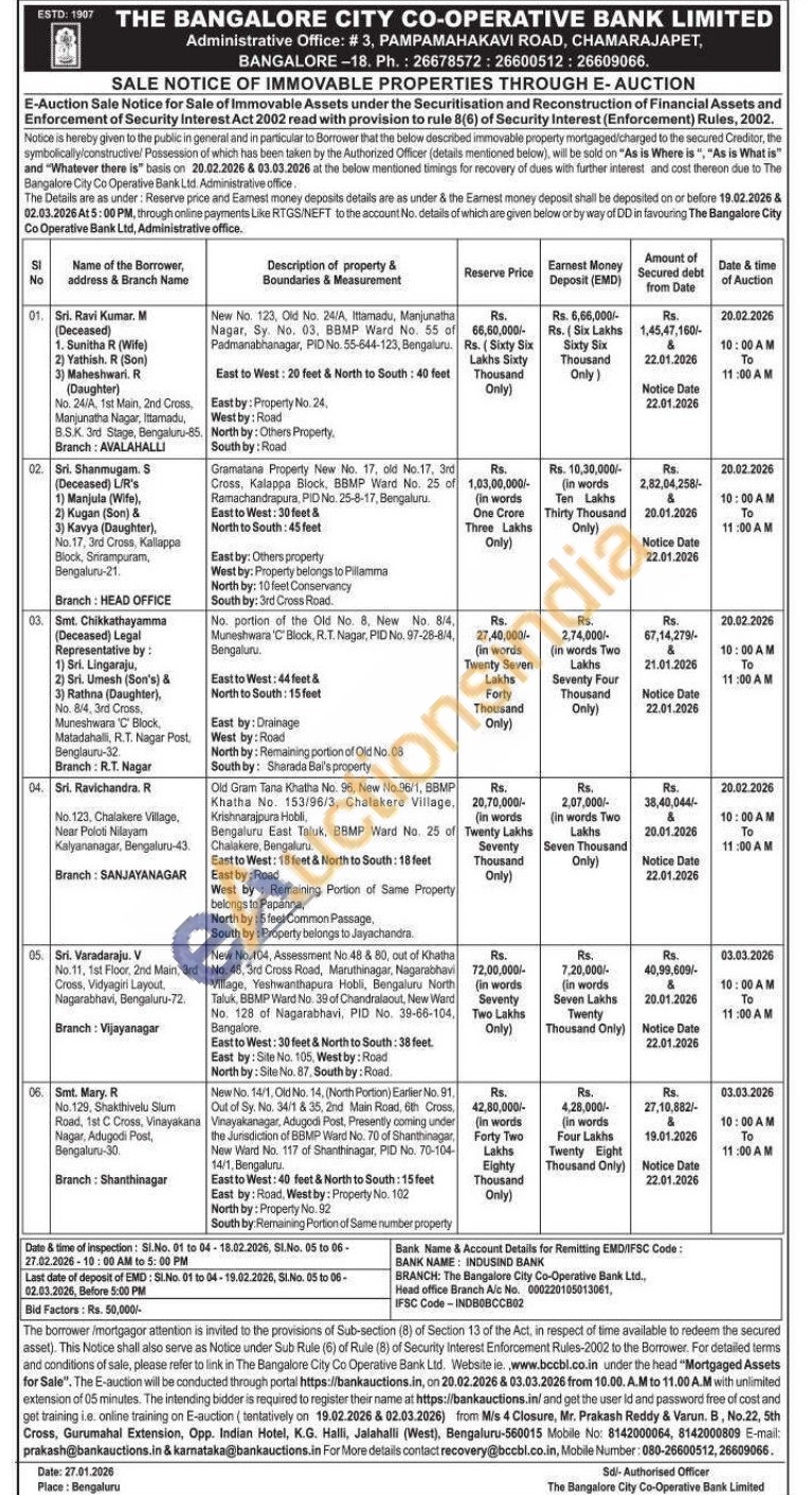 5) New No. 104, Assessment No.48 & 80, out of Khatha No. 48, 3rd Cross Road, Maruthinagar, Nagarabhavi Village, Yeshwanthapura Hobli, Bengaluru North Taluk, BBMP Ward No. 39 of Chandralaout, New Ward No. 128 of Nagarabhavi, PID No. 39-66-104, Bangalore. East to West: 30 feet & North to South: 38 feet. East by: Site No. 105, Westby: Road North by: Site No. 87, South by: Road.