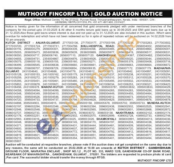 Muthoot Fincorp Ltd Gold Auctions Auction in Thiruvananthapuram