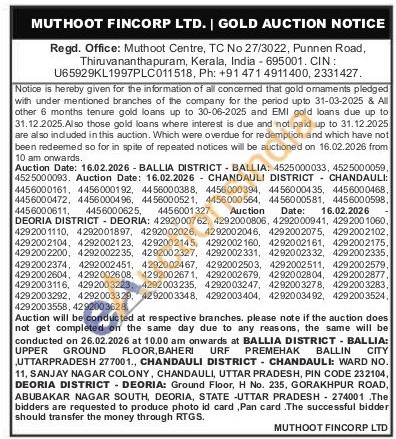 Muthoot Fincorp Ltd Gold Auctions Auction in Thiruvananthapuram