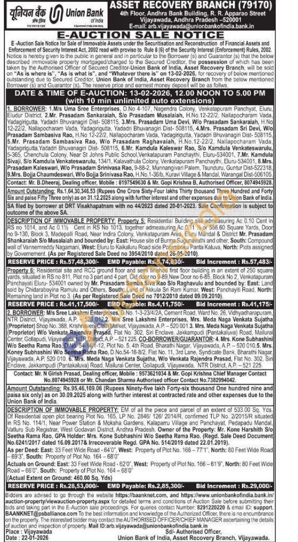 Contact: Mr. N. Girish Prasad, Dealing officer, Mobile: 9573621034 & Mr. Gopi Krishna Chief Manager Contact No.8074945928 or Mr. Chandan Sharma Authorised officer Contact No.7382994042
