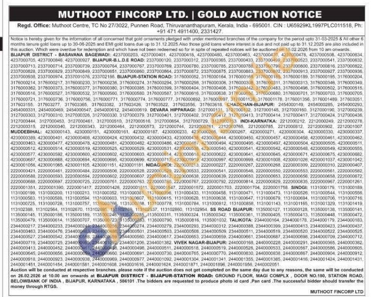 Muthoot Fincorp Ltd Gold Auctions Auction in Bijapur