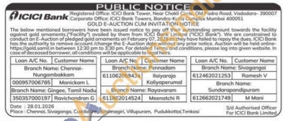 ICICI Bank Gold Auctions Auction in Chennai
