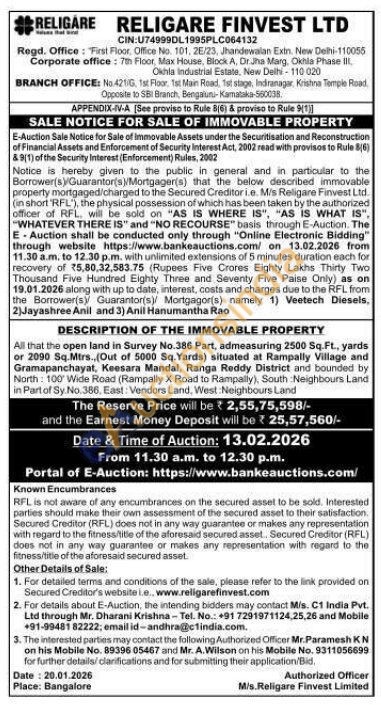 All that the open land in Survey No.386 Part, admeasuring 2500 Sq.Ft., yards or 2090 Sq.Mtrs., (Out of 5000 Sq. Yards) situated at Rampally Village and Gramapanchayat, Keesara Mandal, Ranga Reddy District and bounded by North: 100° Wide Road (Rampally X Road to Rampally), South Neighbours Land in Part of Sy No.386, East: Vendors Land, West: Neighbours Land