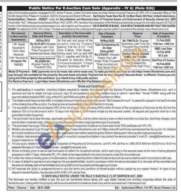 All that part and parcel of the property bearing Property bearing Fiat No A-147, First Floor, A Block, "VGN Royale" having super built up area 645 Sq. F1, together with 246 Sq. Ft. Situated at Sekkadu Road, Vilinjayambakkam Village Chennai, Tamil Nadu 600115