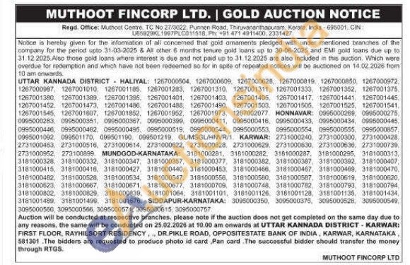 Muthoot Fincorp Ltd Gold Auctions Auction in Uttara Kannada