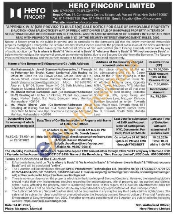 All that piece of parcel of flat no 04, admeasuring 248 sq. ft. Carpet Area, on the 1 floor, in Wing B, in the building known as "Sumer Tower No 4, AT Seth Motisha Lane, Opposite MTNL Tower, Mazgoan, VTS, Mumbai 4000 010, constructed on all that price and parcel of land bearing Cadastral Survey no. 399, Lying being and situated Love Lane, Mazgaon Division Bombay bounded as under Towards East: Mount road, Towards West. BTT Chawis, Towards North: Sumer Tower No. 3. Towards South. Seth Motisha Lane