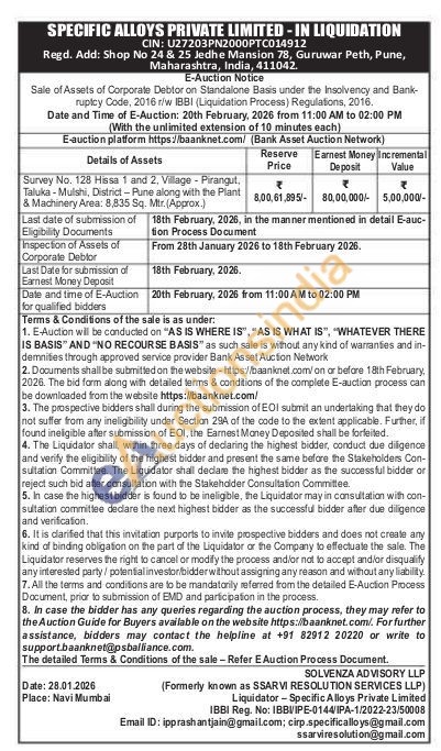 Survey No. 128 Hissa 1 and 2, Village - Pirangut, Taluka - Mulishi, District - Pune along with the Plant & Machinery Area: 8,835 Sq. Mtr.