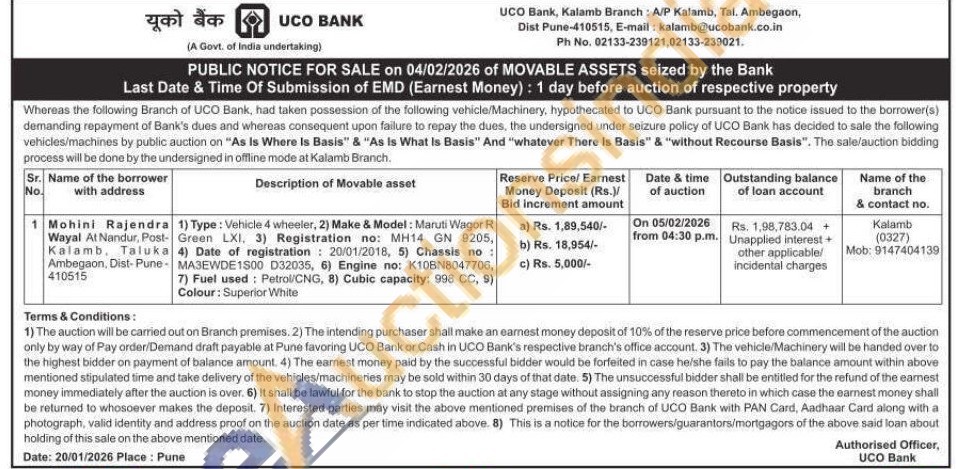 1) Type: Vehicle 4 wheeler, 2) Make & Model: Maruti Wagor R Green LXI. 3) Registration no: MH14 GN 9205, 4) Date of registration: 20/01/2018, 5) Chassis no: MA3EWDE1500 D32035, 6) Engine no: K10BN8047706, 7) Fuel used: Petrol/CNG, 8) Cubic capacity: 998 CC, 9) Colour: Superior White
