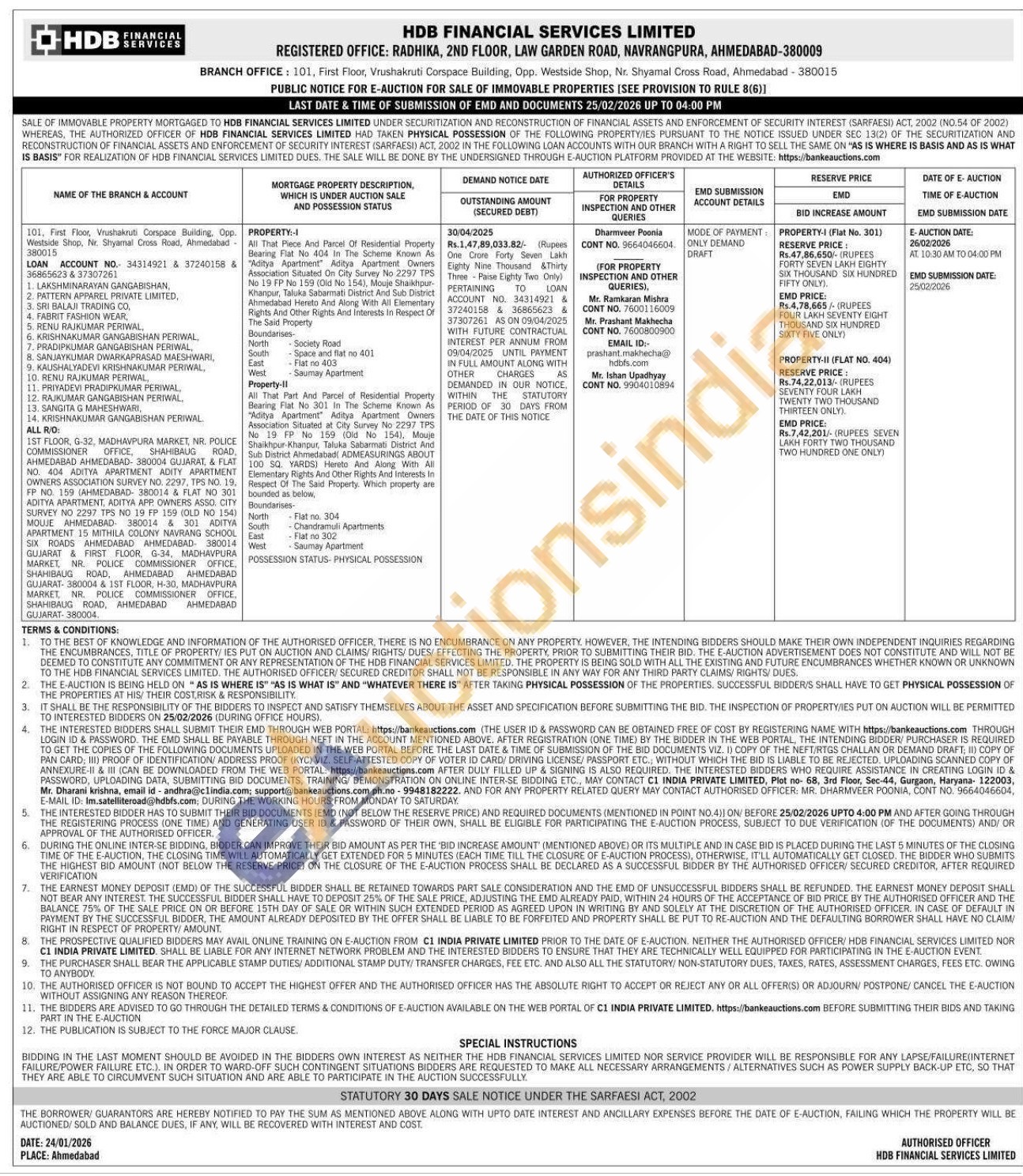 All That Piece And Parcel Of Residential Property Bearing Flat No 404 in The Scheme Known As Aditya Apartment" Aditya Apartment Owners Association Situated On City Survey No 2297 TPS No 19 FP No 159 (Did No 154), Mouje Shaikhpur Khanpur, Taluka Satiarmati District And Sub District Ahmedabad Hersty And Along With All Elementary Rights And Other Rights And And Interests in Pespect Of The Said PropertyBounidenses North South East Wint Road Space and flat no 401 Saunay Apartment Fiat mm 403