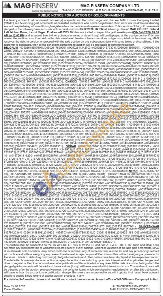 MAG Finserv Company Limited Gold Auctions Auction in Belagavi
