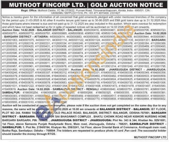 Muthoot Fincorp Ltd Gold Auctions Auction in Bolangir