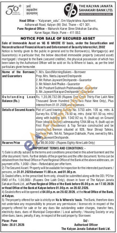 Plot of Land bearing Survey No. 5753 adm. 105 sq. mtrs. & Survey No. 5766 adm. 76.50 sq. mtrs, (total 181.50 sq. mtrs) along with building adm. 1342.92 sq. ft. (built-up) on Ground Floor (shop & factory) admeasuring 1264.88 sq. ft. (built-up) on First Roor (Residence) & Top Terrace constructed and be constructed thereon situated at 928, Near Shivaji Talkies, Somwar Peth, Teli Ali, Talegaon Dabhade, Pune, owned by Mrs. Neeta Jaywant Deshpande