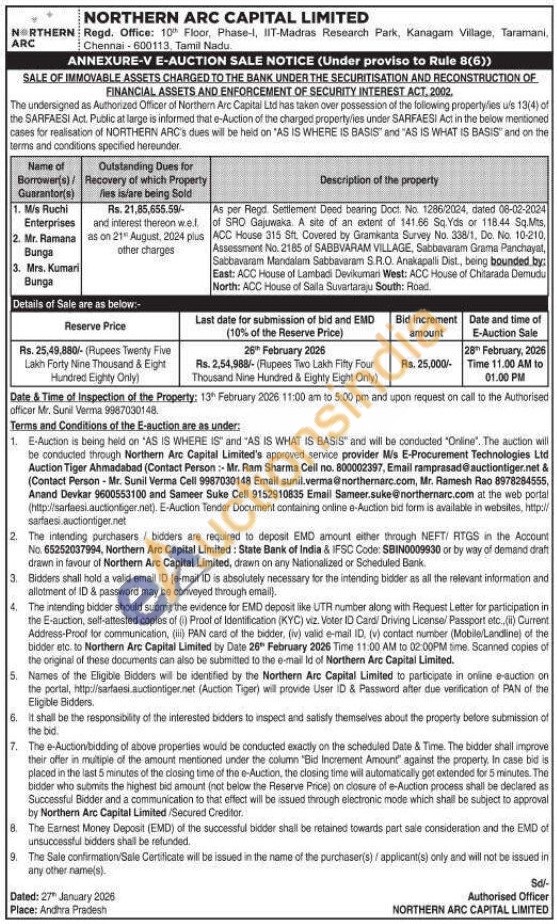 As per Regd. Settlement Deed bearing Doct. No. 1286/2024, dated 08-02-2024 of SRO Gajuwaka. A site of an extent of 141.66 Sq. Yds or 118.44 Sq.Mts, ACC House 315 Stt Covered by Gramkanta Survey No. 338/1, Do. No. 10-210, Assessment No. 2185 of SABBVARAM VILLAGE, Sabbavaram Grama Panchayat, Sabbavaram Mandalam Sabbavaram S.R.O. Anakapalli Dist., being bounded by: East: ACC House of Lambadi Devikumari West: ACC House of Chitarada Demudu North: ACC House of Saila Suvartaraju South: Road