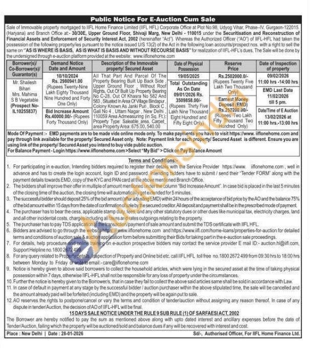 All That Part And Parcel Of The Property Bearing Built Up Back Side Upper Ground Floor Without Roof Rights, Out Of Built Up Property Bearing No C-28. Out Of Khasra No 582 And 583, Situated in Area Of Village Bindapur Property Type: Sakable area, Carpet Colony Known As Janki Pun. Block C. Gali No 4. Uttam Nagar New Delhi, 110059 Area Admeasuring (in Sq Ft.) area Property Arел: 675.00,540.00