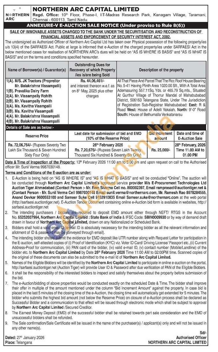 All That Piece And Parcel That The Roc Roof House Bearing No. 5-41 Having Plinth Area 1020.00 Sft, With A Total Area Ademasuring 557.11Sq. Yds. or 465.79 Sq.mts., Situated At Gurthur Village of Thorrur Mandal of Mahabubabad District, 506163 Telangana State, Under The Jurisdiction of Registration Sub-Registrar Mahabubabad: East: R & Road West: House of Adelili Yakaiah. North: 9'-0" Road South: House of Bethumalla Venkatanarsu