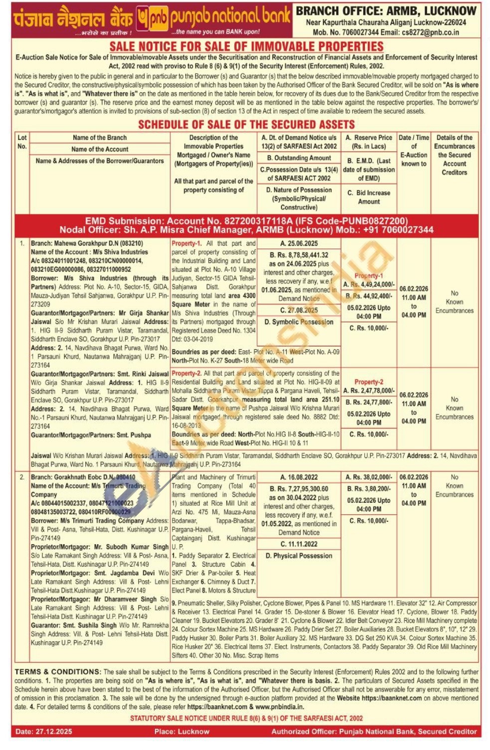 Property-1. All that part and parcel of property consisting of the Industrial Building and Land situated at Plot No. A-10 Village Judiyan, Sector-15 GIDA Tehsil-Sahjanwa Distt. Gorakhpur measuring total land area 4300 Square Meter in the name of M/s Shiva Industries (Through its Partners) mortgaged through Registered Lease Deed No. 1304 Dtd: 03-04-2019