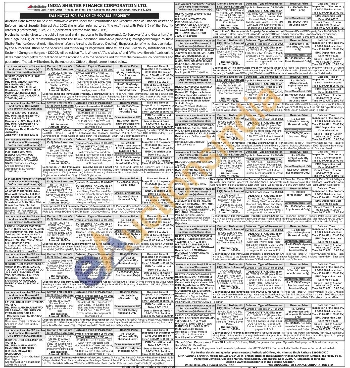 Description Of The Immovable Property/ Secured Asset: All Piece And Parcel Of Property Patta No 43, Village -Deroli Ka Jhopdagram Panchayat-Uma Ji Ka Kheda, Panchayat Samiti-bijoliyabijoliya Dist-Bhilwara Rajasthanbhilwara Adm Area 1501.5 Sqft Boundary:- East-Aam Rasta, West-House Of Sanju Devi, north-Aam Rasta, south-Aam Rasta